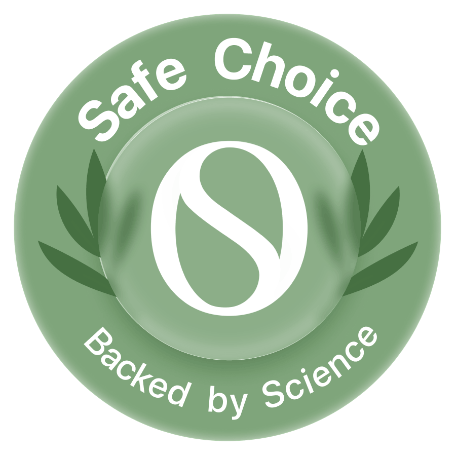 This distinction mark recognizes cosmetic formulas with little to no known or suspected human health risks, based on current, authoritative scientific research and regulatory data for all ingredients used to achieve a product’s function, stability, texture, color, and scent. The Safe Choice mark is reserved for products scoring 95 or higher in the OnSkin app.